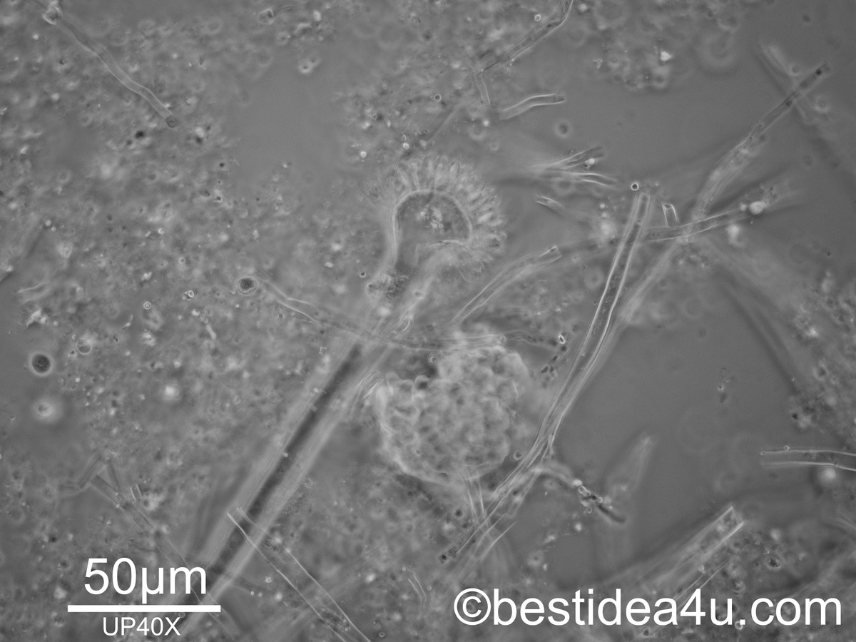 コウジカビの分生子柄・頂のう・フィアライド(対物40倍)