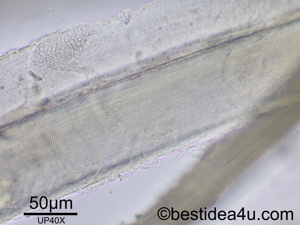40倍の対物レンズを使うと縞模様がはっきりと見えてきました。観察場所を変えてみます。