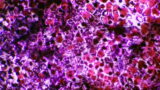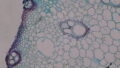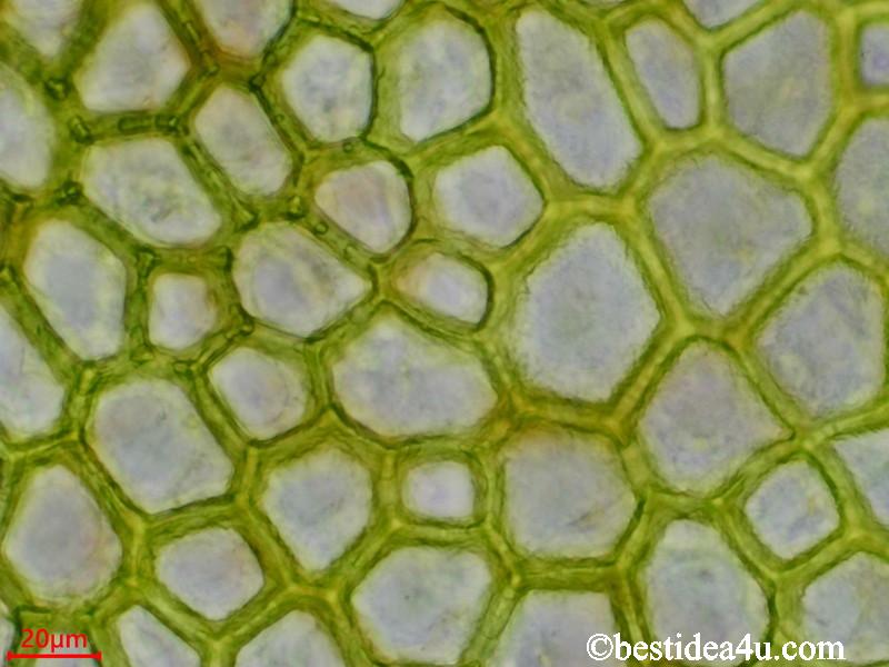 スライドガラス上の薄皮に水を1滴たらし、カバーガラスをかけて対物10倍(150倍)で観察したのがこちら。