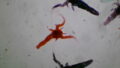 その上に水を1滴たらし、カバーガラスをかけて低倍率から観察します。