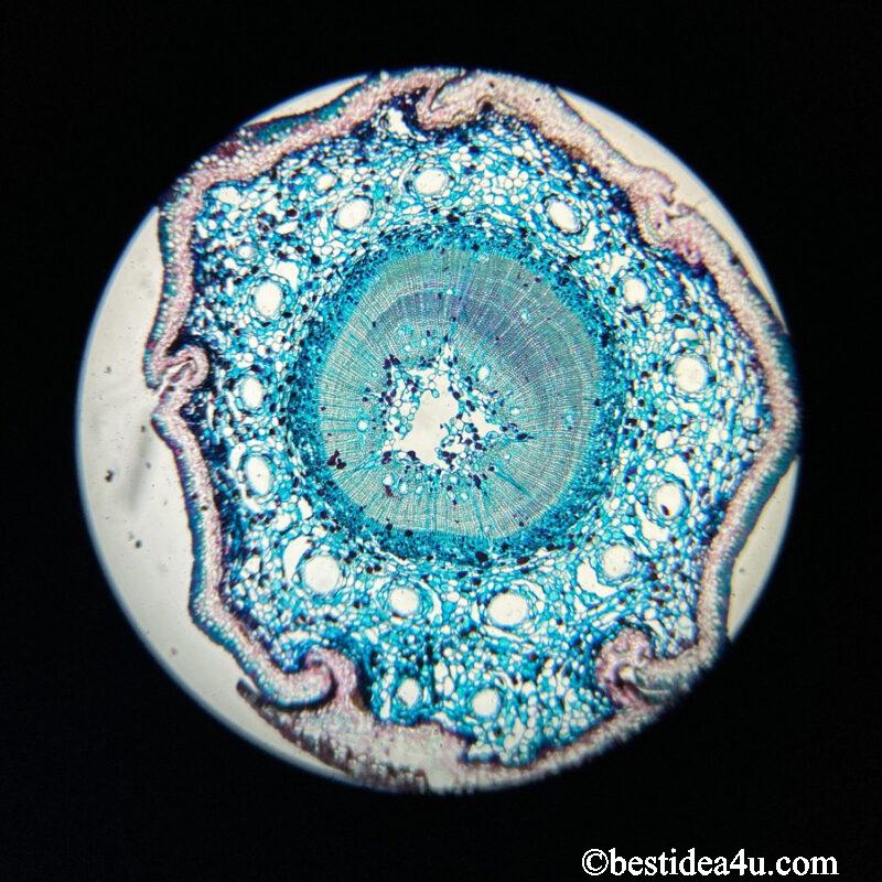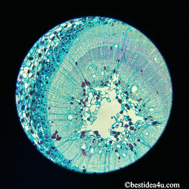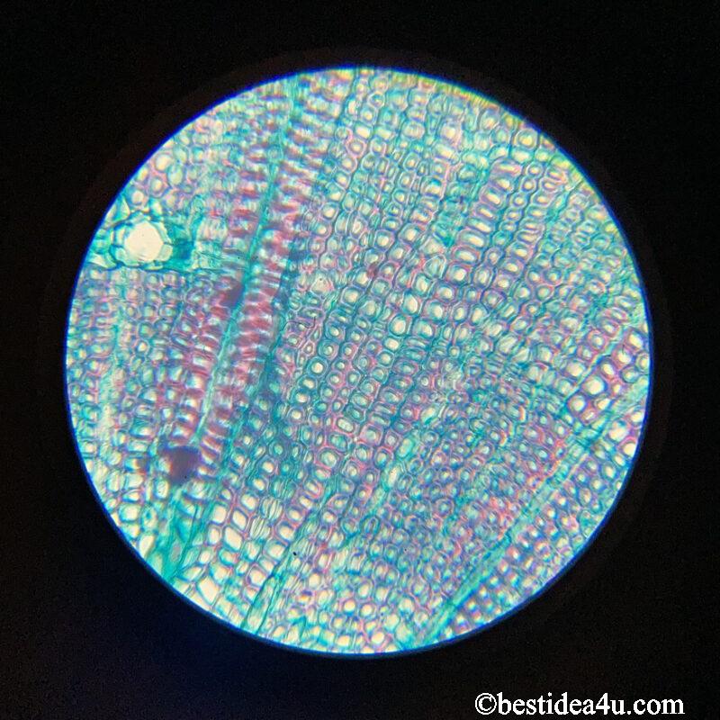松の新芽(枝) 対物10倍・接眼10倍(顕微鏡:SW200DL、カメラ:iPhoneSE2)