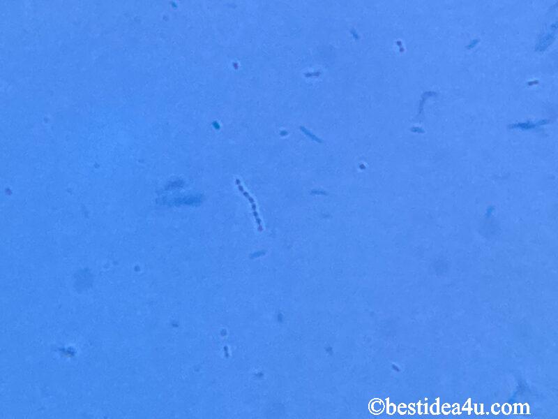 ヨーグルトの乳酸菌(メチレンブルー染色)対物40倍・接眼10倍・カメラズーム4倍(顕微鏡:SW200DL、カメラ:iPhoneSE2)
