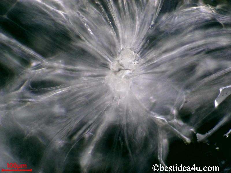 丸い部分は四角い結晶の集合体のようにも見えます。倍率をあげてみましょう。